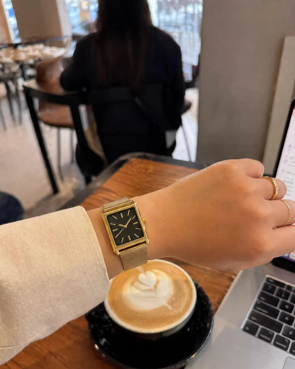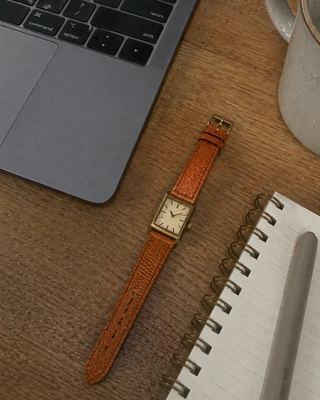 Vintage feel and sleek minimalism are at the core of our Kyo collection. Its 20mm wide band seamlessly complements the sleek rectangular case, creating a harmonious and modern design.